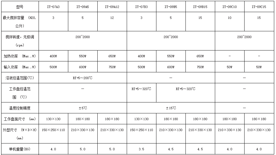 ● 磁力搅拌器:IT-09C无加热功能。