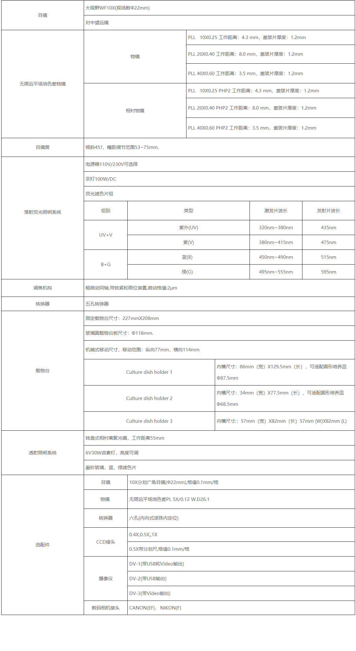 载物台:机械移动载物台,外形尺寸:227mmX208mm,移动范围30mmX30mm.圆形可旋转载物台板尺寸:最大外径Ф118mm,最小通光口径小于Ф20mm.