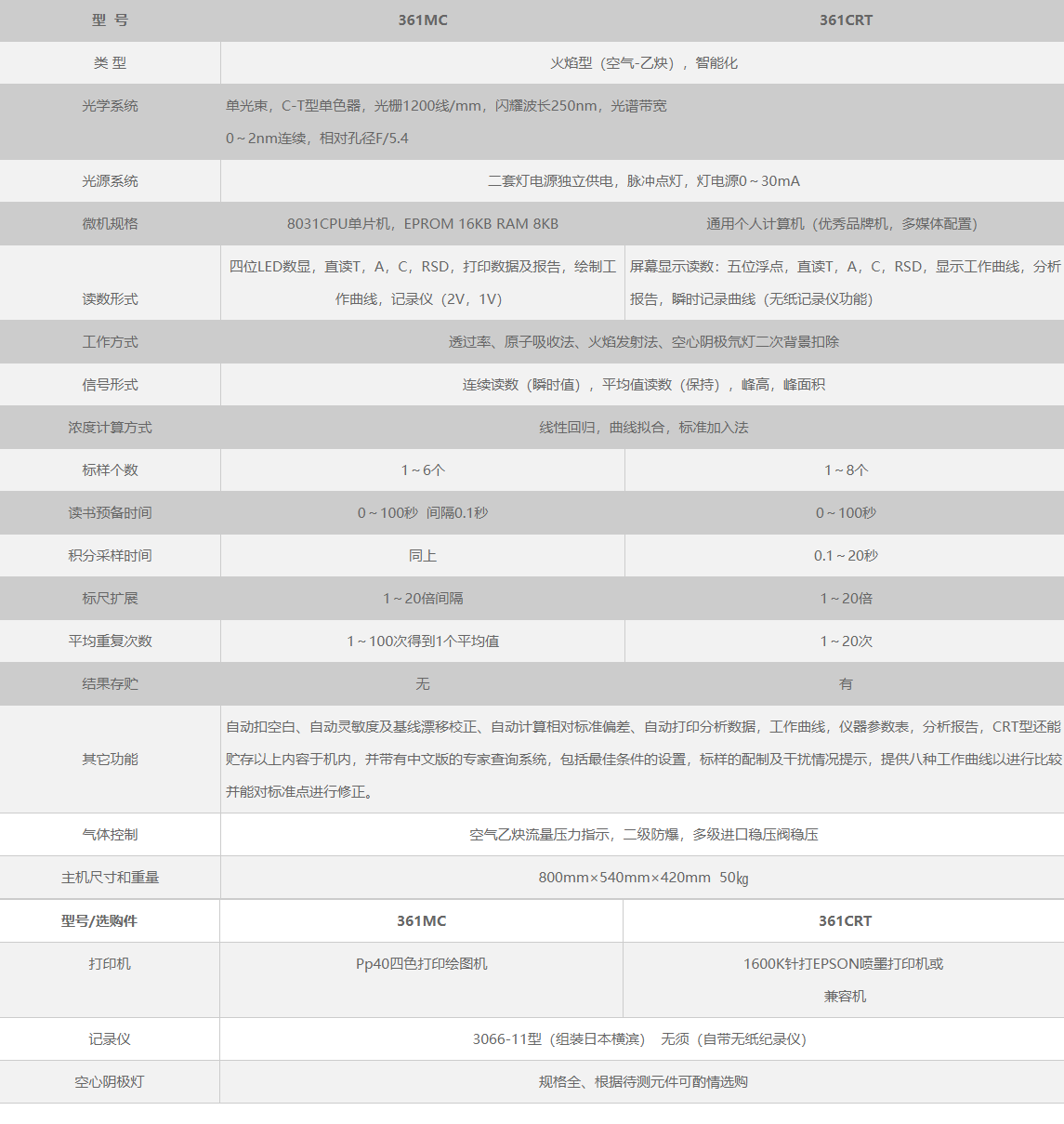 ● 功能丰富:计算机自动扣除空白值,自动扣除灵敏度漂移,自动扣除基线漂移,自动计算平均值及偏差,自动进行工作曲线方程计算并读出浓度值,自动打印分析报告,还能进行火焰发射光度法,氢化物发生原子吸收法及在线富集流动注射原子吸收法分析。后二种灵敏度达到石墨炉水平,但价格远低于石墨炉。